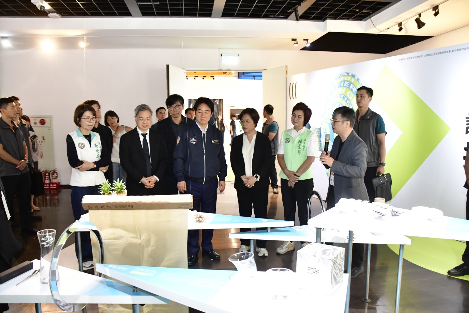 賴總統指出,特別感謝彰化王惠美縣長跟縣府團隊努力承擔、用心擘劃,也感謝經濟部龔明鑫部長、產發署邱求慧署長,還有行政院部會的大力支持,也要感謝張基義院長、總策展人及所有參展團隊,非常謝謝。