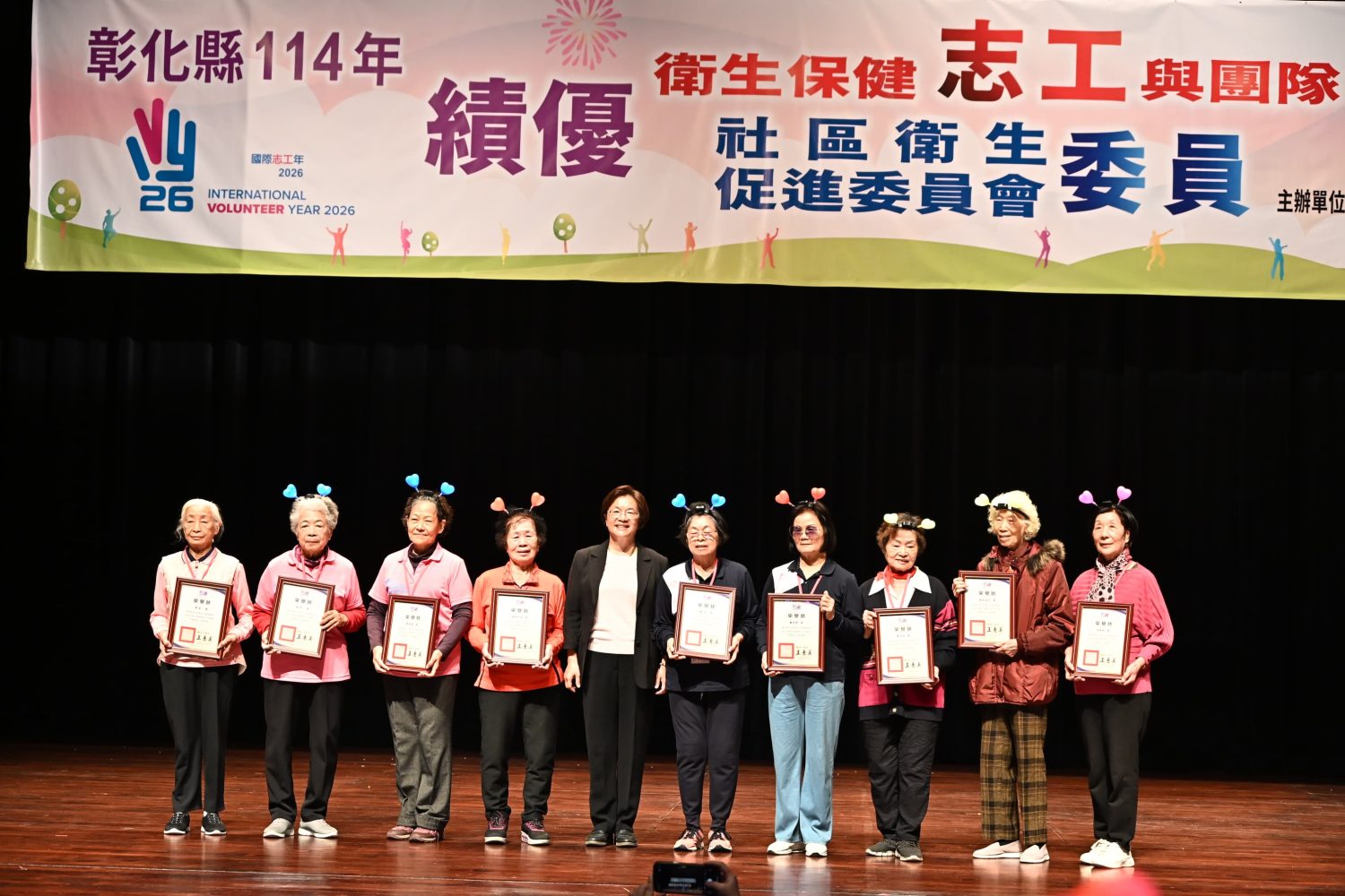 【記者呂沅龍/彰化報導】彰化縣衛生局於今(26)日上午於員林演藝廳舉辦「114年衛生保健績優志工與團隊暨社區衛生促進委員會績優委員表揚大會」,彰化縣長王惠美親臨現場頒獎。此次活動除了表彰績優個人與團隊的卓越表現,也誠摯感謝超過1,700名衛生保健志工與將近800名衛生促進委員長年對公衛業務的無私奉獻,攜手推動縣內多項衛生保健工作,展現社會溫度與大愛精神。