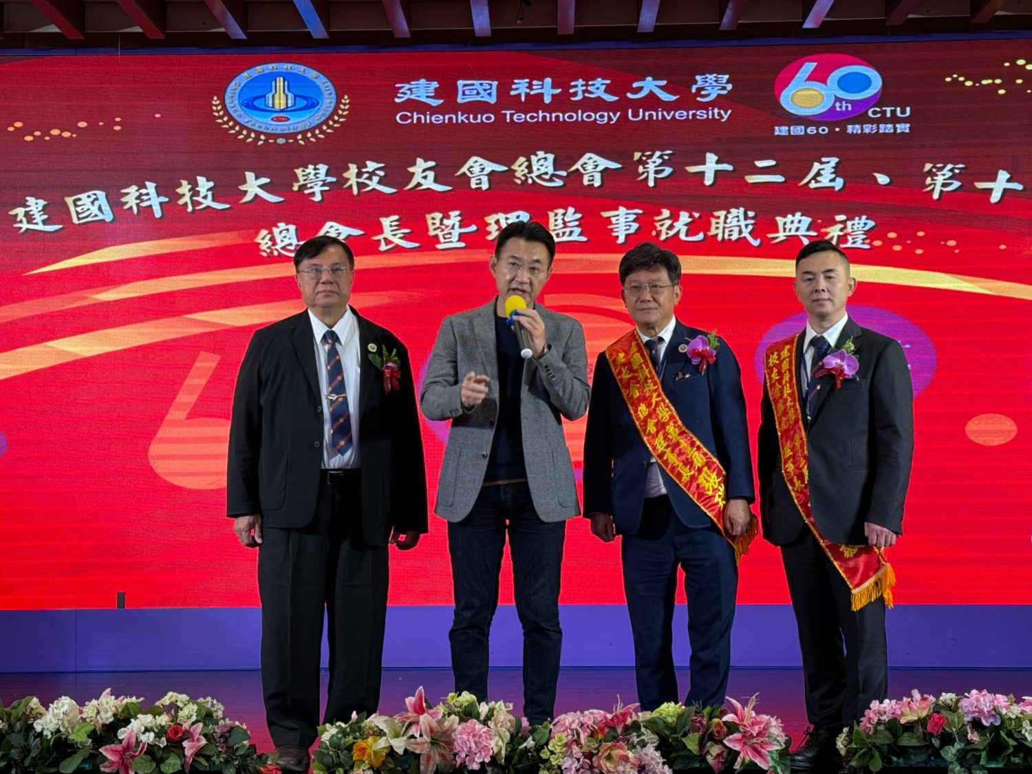 現場席開60桌,為今年60週年校慶畫下完美句點。張瑞泰從卸任理事長林維毅手中接過印信,開啟校友服務新篇章。張瑞泰現職為卡登實業董事長,在營造業擁有深厚背景,為人海派務實,長期投身社會公益,曾任國際獅子會國際理事、行政院政務顧問,處處展現卓越領導力。他表示:「這份重擔是榮譽也是責任,我們將秉持『共創事業榮譽』的精神,持續擴大校友總會影響力,並加強學弟妹的就業鏈結,讓『建國人』在各行各業發光發熱!」。